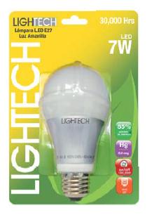 Iluminación: profesional, residencial e industrial FOCO BOLA LED A60 7W E27 3000K LUZ AMARILLA MULTIVOLTAJE Código: 44-OA60/LED/7W/30K/M